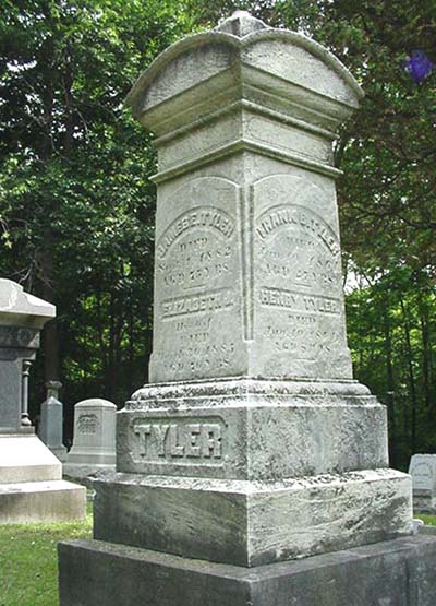 Born 1807, died 1882 James Tyler was Mayor of Auburn 1868. The Tyler monument is located in the Greenwood section of Fort Hill Cemetery.